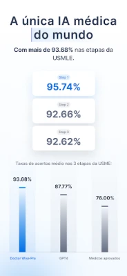 Com a Doctor Wise você pode tirar dúvidas em segundos, ponderar casos clínicos e hipóteses diagnósticas, otimizar o estudo criando questões, simulados personalizados e muito mais.