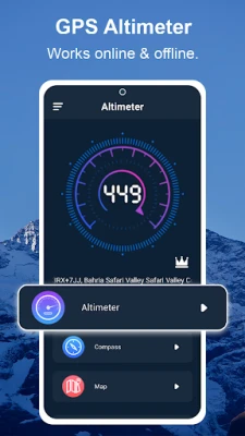 Máy đo độ cao GPS và Bản đồ độ cao hàng không GPS ngoại tuyến hoạt động ở chế độ máy bay. Ghi lại lịch sử máy đo GPS Độ cao của bạn và chia sẻ với Hình ảnh và bạn có thể chỉnh sửa hình ảnh của mình. Đây là ứng dụng Bản đồ tìm hướng off-road tốt nhất. Máy đo độ cao GPS thông minh miễn phí Ứng dụng đo độ cao kỹ thuật số của tôi để đi bộ đường dài và trượt băng trên núi. Cảm biến áp suất khí áp kế là một tính năng độc đáo khác.