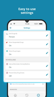 👨👩👧 MULTI-PERSON SUPPORT: Assign specific medication reminder to different people (or even pets). Sort your medications by person, time of next dose, drug name, or drug type - so you can keep your whole family's medication schedule organized.