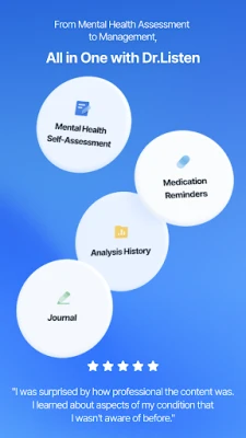 Dr.Listen is a non-medical self-assessment and mental wellness management service that allows you to easily check and manage your mental health and lifestyle habits. This is not a medical app that provides professional diagnosis or treatment, but rather a tool designed to help you assess and manage your mental well-being on your own.