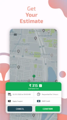 - You can view the current fare, elapsed time on the app, along with the driver's live location throughout the trip.