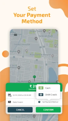- Pick a payment mode (You can pay by Cash at the end, or by using D4M Credits, an online prepaid wallet-like payment system which can be recharged using cards, internet banking, UPI, Paytm, and more!).