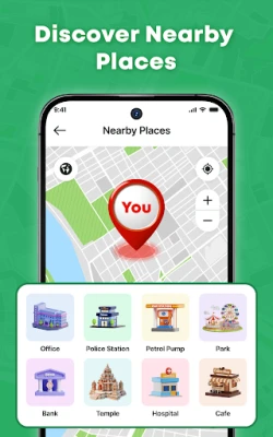 - Discover nearby places such as restaurants, hotels, and shops right on a 3D satellite map live.