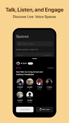 Join live conversations based on your personality type, dive into topics that matter to you, or just hang out and listen. ENT’s voice spaces and community events give your ideas room to grow.