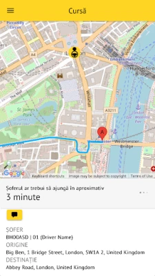 - Aplicația te poate localiza automat, iar după ce confirmi adresa poți trimite foarte rapid comanda. - După ce s-a trimis comanda și a fost acceptată de către un șofer, vei putea vedea pe hartă unde e acel șofer față de punctul de origine ales de tine. - Ai toate detaliile necesare legate de cursă: numărul de înmatriculare al mașinii, indicativul, numele șoferului.