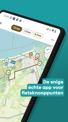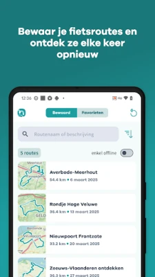 Met onze handige navigatiemodus kan je elke fietsroute volgen met de GPS-functie van je smartphone. De app leidt je langs de route en zal je waarschuwen als je van de route afwijkt. Als je een route volgt langs fietsknooppunten zal een stem je bij elk knooppunt ook melden wat het volgende knooppunt is. De navigatiemodus is compatibel met de bijhorende Wear OS-app. Andere smartwatches geven ook instructies bij knooppunten als ze notificaties kunnen ontvangen.