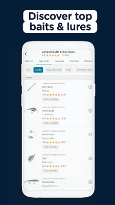 • Improve your fishing with personal stats. Log gear and spot patterns in your fishing by seeing which baits are most effective in specific conditions.