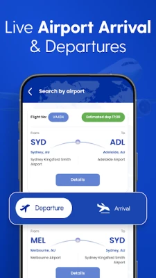 inflight - Flight Tracker app gives you real-time flight status, accurate tracking, airport details, and airport arrivals and depatrures. Make travel easier with your all-in-one flight companion. For fast updates on departure timings, gate information, and arrival schedules with accurate date and time details, you may simply search for flights by route or flight number. inflight - flight tracker app helps you with real-time flight schedule updates through a simple user interface. It provides planes live on flight radar map, airport departures and arrivals.