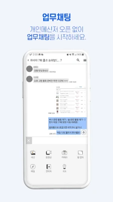 - 폐쇄형 채팅으로 조직원 끼리만 가능, 채팅방 개설, 파일 공유 기능