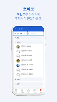 - 휴대폰의 주소록과는 별개로 아톡비즈 어플내의 주소록 기능 공용/개인 분리 동기화 기능.
