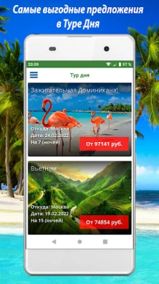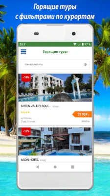 ▪ внутри приложения время от времени появляются уникальные предложения, воспользовавшись которыми можно приобрести горящие путевки в жаркие страны по сниженным ценам;