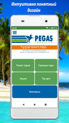 Пегас туристик выгодно выделяется на фоне аналогичных приложения для поиска туров следующими преимуществами: