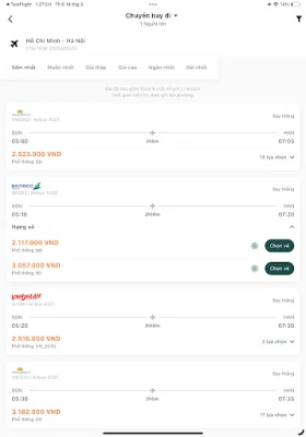 Vé máy bay: Đại lý dễ dàng lựa chọn chuyến bay phù hợp theo hãng bay, thời gian khởi hành/đến, loại máy