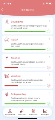 - Leefstijl-module: krijg inzicht in alle 5 BRAVO-factoren (Bewegen, Roken, Alcohol,