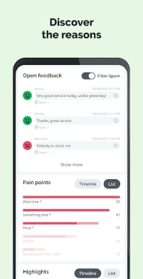 - Discover the reasons behind feedback through open feedback, pain points, and highlights