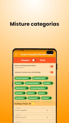 Misture categorias, adicione ou exclua hashtags, crie categorias personalizadas, deixe tudo do jeito que preferir.