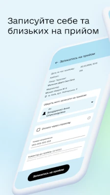 Хочете отримувати сповіщення з нагадуванням про прийом або повідомлення про скасування вашого запису на прийом, нагадування про закінчення терміну рецепту чи направлення? Дозвольте застосунку надсилати сповіщення та будьте спокійні, що не пропустите важливої інформації.