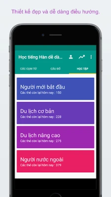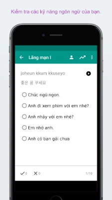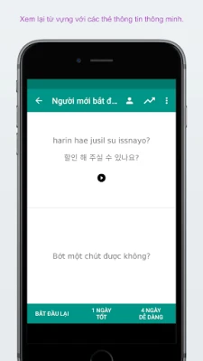 ✓ Điều chỉnh cài đặt câu đố và các thẻ thông tin với Tiếng Việt -> Tiếng Hàn, Tiếng Hàn -> Tiếng Việt