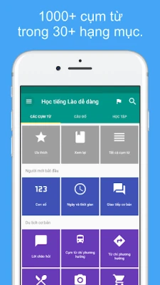 Học tất cả hơn 1000+ cụm từ và từ vựng tiếng Lào trong phiên bản Pro với các hạng mục bổ sung như dưới :
