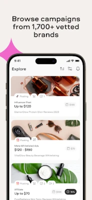 - Get actively promoted by us — We are helping you build an attractive creator profile, making it easy for brands to discover you. Build your portfolio within the app, earn qualified - badges, and receive ratings from brands to boost your visibility.