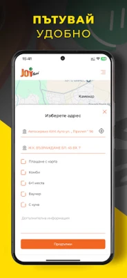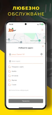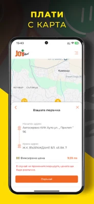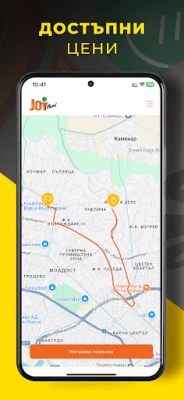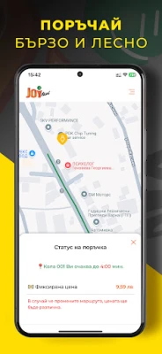 Joy Taxi App дава възможност да следите автомобила, който пътува към Вас в реално време. Автоматични известия ще Ви информират за статуса на Вашата поръчка.