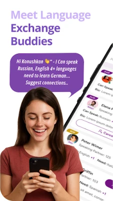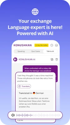 Learn and practice languages with native speakers thanks to Konushkan, your AI-based language teacher and global language exchange platform. Our app connects you with other language students worldwide, allowing you to speak and improve your skills. Whether you're a beginner or an advanced learner, Konushkan has got you covered!