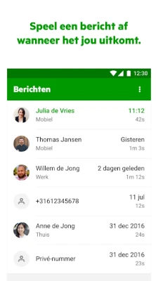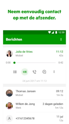 - Berichten die verwijderd worden in je voicemailbox (na looptijd) blijven nog wel beschikbaar in de app.