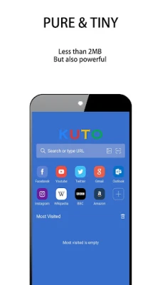 KUTO Mini Browser is designed for minimalism and you will not find any advertisement