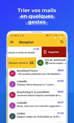 Grâce à son ergonomie des plus intuitives, vos messages sont faciles à rédiger et à classer depuis votre smartphone. Plus fluide, plus design, plus pratique, nul doute que vous succomberez bien vite à votre toute première application afin de pouvoir écrire, répondre et envoyer des mails et ce, où que vous soyez. L’interface est simple et facile d’accès.