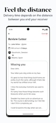 Delivery time depends on the physical distance between sender and receiver, making each interaction special.