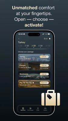 Simply top up your balance and travel without any package expiration limits—we’ll take care of your internet access. The app will automatically switch to your new location and notify you of the applicable rates.