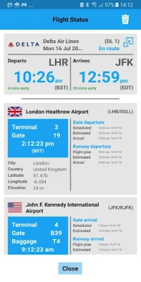 ★ Detailed departure and arrival information including gate and terminal numbers, delays and baggage reclaim details. Please note that the availability of data is dependent upon the airline and airport.