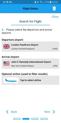 ★ Enter your flight number if known, or your departure and arrival airports (optional choose airline to filter results).