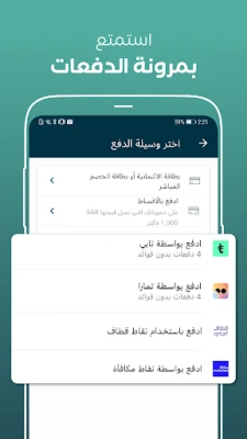 - وسائل دفع آمنة ومتعددة، مع البطاقات الائتمانية، بطاقات السحب الآلي، بطاقات مدى (في السعودية)، نقاط "قطاف" (في السعودية)، كي نت (في الكويت)، أو الدفع بالأقساط (مع مجموعة مختارة من البنوك)