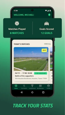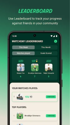 2. Player performance stats and leaderboard. If you want to be as competitive as possible while using our app, this is for you. Within MatchDay, you will be able to track matches played and goals scored, and what is even better, you will receive rewards the more you play and the more you score goals. Can´t wait to see you on the top of our boards!