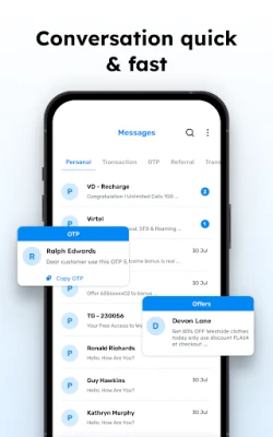 Your inbox, organized automatically! SMS Organiser sorts messages into Personal, Business, OTPs, and Promotions, so you never miss important texts.