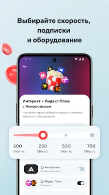 Не устраивают текущие характеристики — меняйте тариф, подключайте и отключайте дополнительные услуги или приостанавливайте их на время отпуска. В приложении доступно управление скоростными бонусами, антивирусами, ТВ-каналами, подписками на онлайн-кинотеатры и сервисами — Литрес,VK Play, Яндекс 360 и другими.