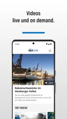 Die Fernseh-Nachrichten von NDR Info im Livestream auf dem Smartphone verfolgen und die letzten Ausgaben von 14:00, 16:00 oder 21:45 Uhr auch immer on demand. Die Top-Videos des Tages und empfohlene Sendungen finden Sie ganz übersichtlich, außerdem das komplette NDR Programm im Livestream.