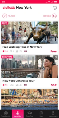 • Guided tours: Walks and tours of New York City with an English-speaking guide, including the most popular tours: Upper & Lower Manhattan and the New York Contrast Tour.