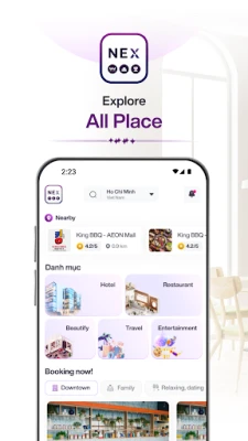 Nex là một trong những ứng dụng đặt chỗ nhà hàng, khách sạn rẻ nhất Việt Nam, mang đến cho người dùng trải nghiệm đặt chỗ nhanh chóng, tiện lợi và đa dạng. Nex cung cấp nhiều lựa chọn về chỗ ở, nhà hàng, và các hoạt động giải trí, ăn uống, spa thư giãn.