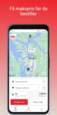 - Appen finner automatisk hvilke taxiselskaper som kan hente deg.