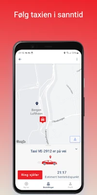 - Du får fortløpende informasjon om hvor taxien befinner seg og kan følge den i kartet helt til turen er over.