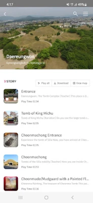 - Regional Tours: If you are interested in hearing stories about your current location, or other regions, you can select a region and listen to audio guides of destinations in that region.