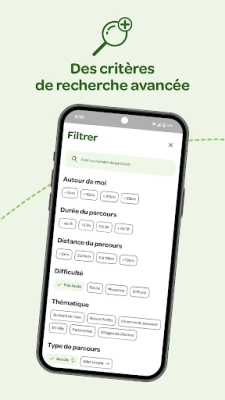 - Trouvez la randonnée qui vous convient grâce aux filtres de recherche.