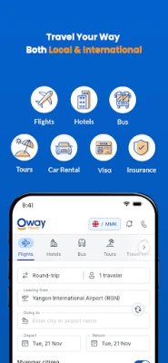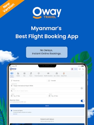 Explore the World with Oway! Plan your dream trip to Myanmar and around the world with Oway’s free travel application. Save on domestic and international airfares, hotels and tour packages. Focusing on both Myanmar and International travellers, Oway’s application is available in Myanmar and English languages and accepts both US Dollars and Myanmar Kyats.