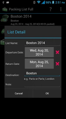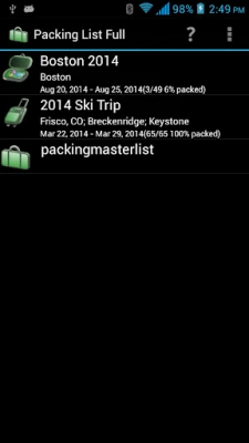 Packing List helps you create and maintain packing lists. It not only lets the user create a list from scratch, but also allows you to generate lists from an existing one. This application comes with several pre-loaded packing master lists. You can simply open the master list(or any existing list). Click on “Generate List/Mass Change” menu item. Check the items you want for your trip and you will have a new packing list ready in no time.
