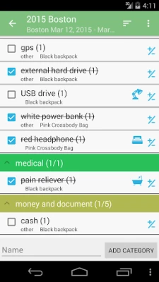 • Pre-loaded master lists(for general use, international travel, travel with kids and etc.)