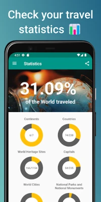 📊 Detailed statistics about your travels: How many countries have you visited? How many World Wonders have you seen? And much more ...