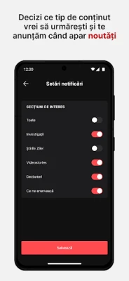 Aplicația Recorder oferă un sistem de notificări personalizat prin care decizi tu ce tip de conținut urmărești, nu decid algoritmii în locul tău. Poți afla de fiecare dată când publicăm o nouă investigație video, când apare o nouă dezbatere cu jurnaliștii Recorder sau când publicăm Știrile zilei.