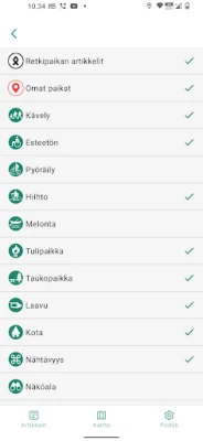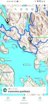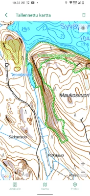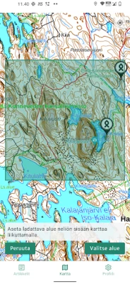 • Maastokartta Suomi (Maanmittauslaitos) • Maastokartta Ruotsi (Lantmäteriet) • Maastokartta Norja (Lantmäteriet) • Kohteita ja reittejä mm. Metsähallitukselta ja Lipas-tietokannasta. • Karttojen tallentaminen puhelimeen (offline-toiminta)